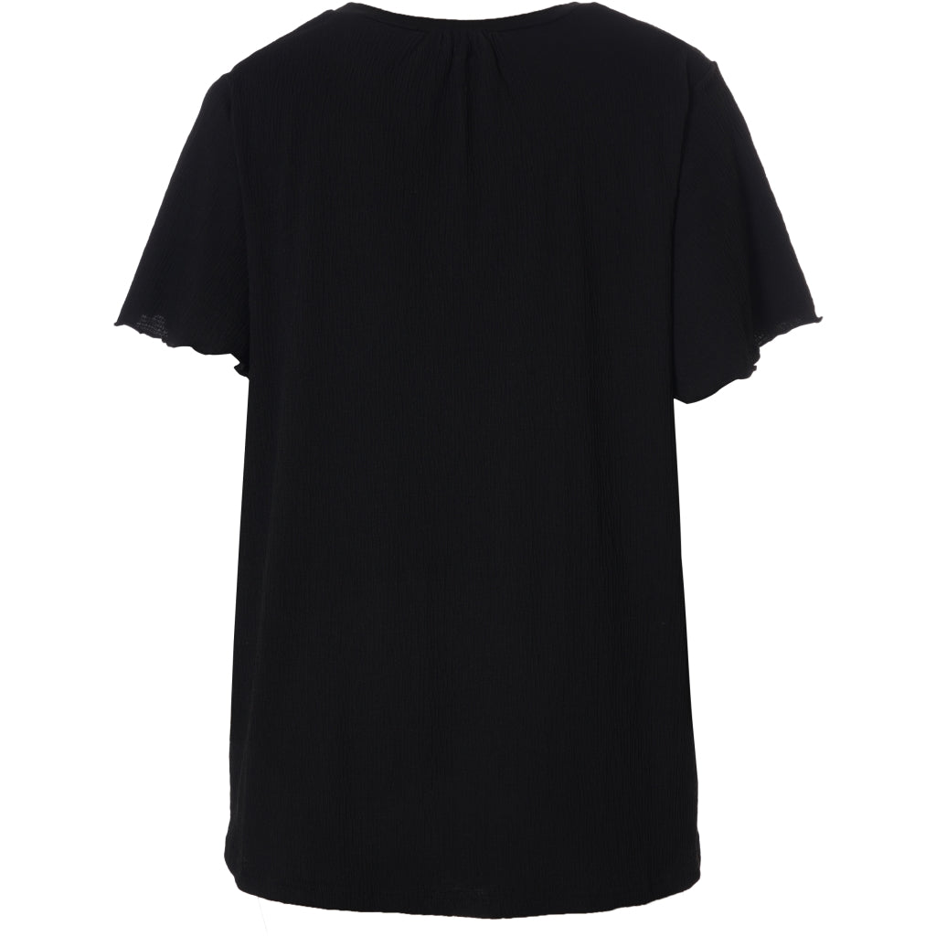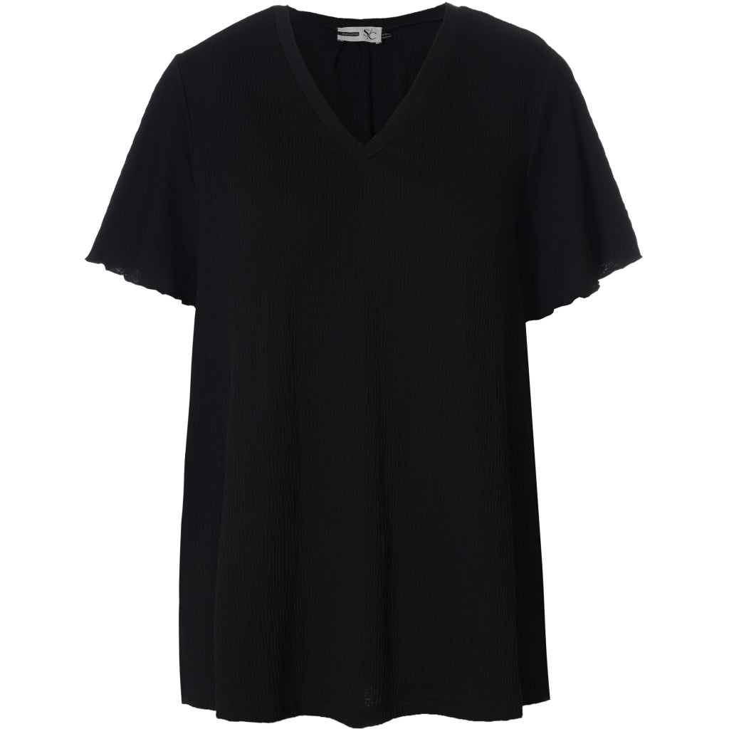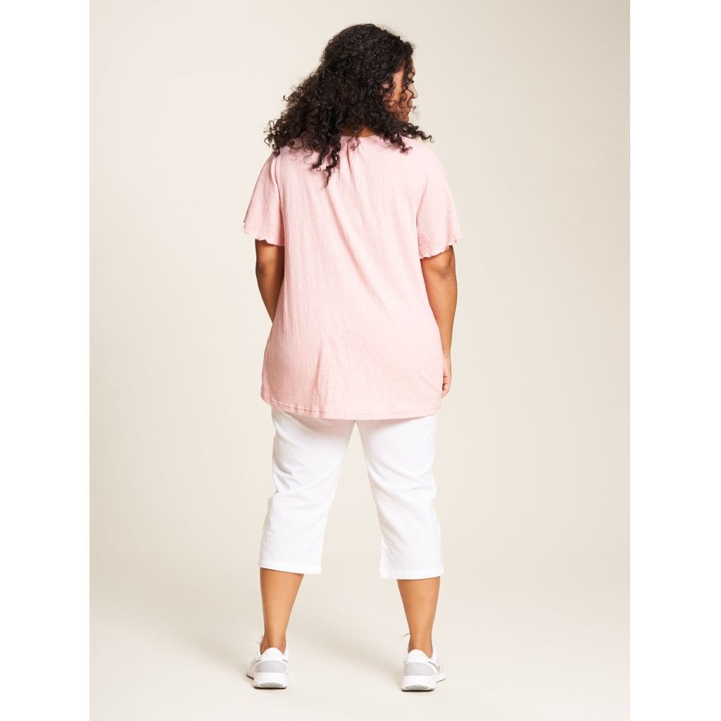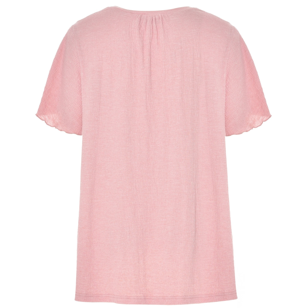 Feminine T-shirt in solid colour in high quality cotton mix. A-shape with V-neck and wide short sleeves.