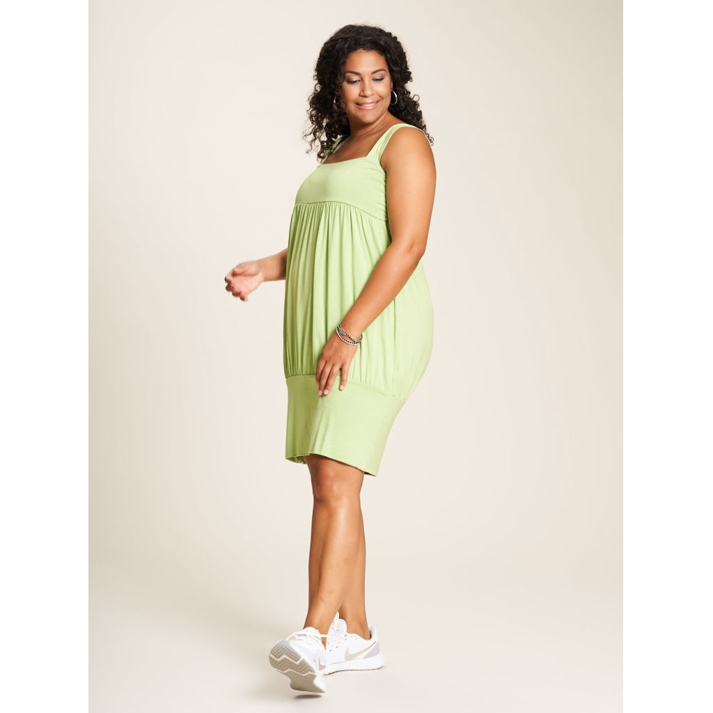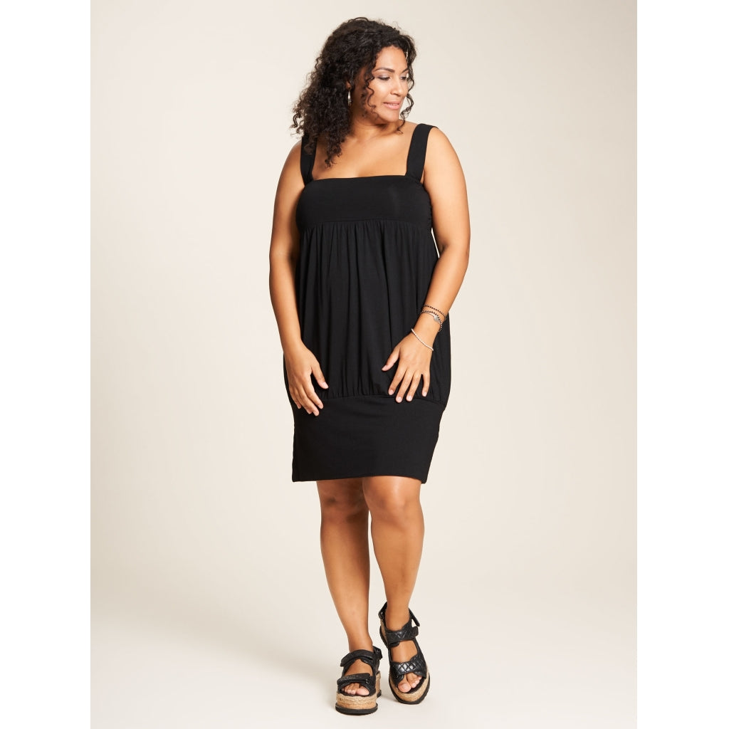 Casual dress in solid colour in high quality viscose jersey. Balloon fit with slightly figure fitted top and bottom. Wide straps.