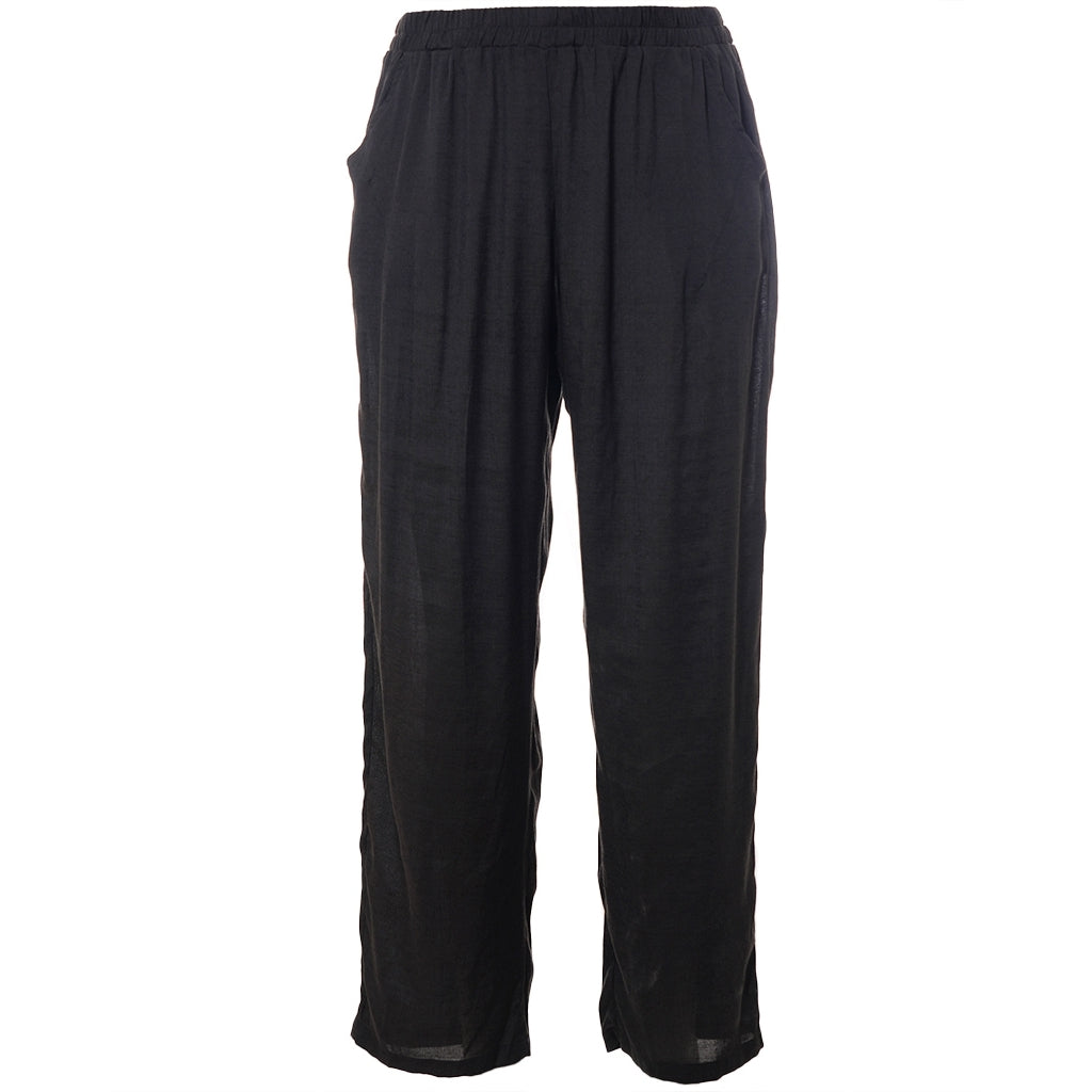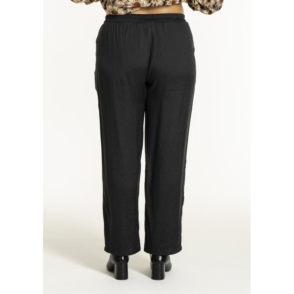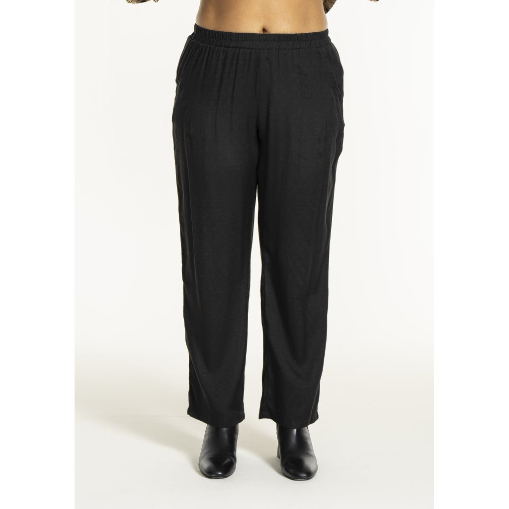 Lette og luftige bukser i polyesterkvalitet, ensfarvet. Stylen har elastik i taljen, hvilket giver en komfortabel pasform med fleksibilitet i livet. Derudover er der sidelommer og lige, løstsiddende ben.