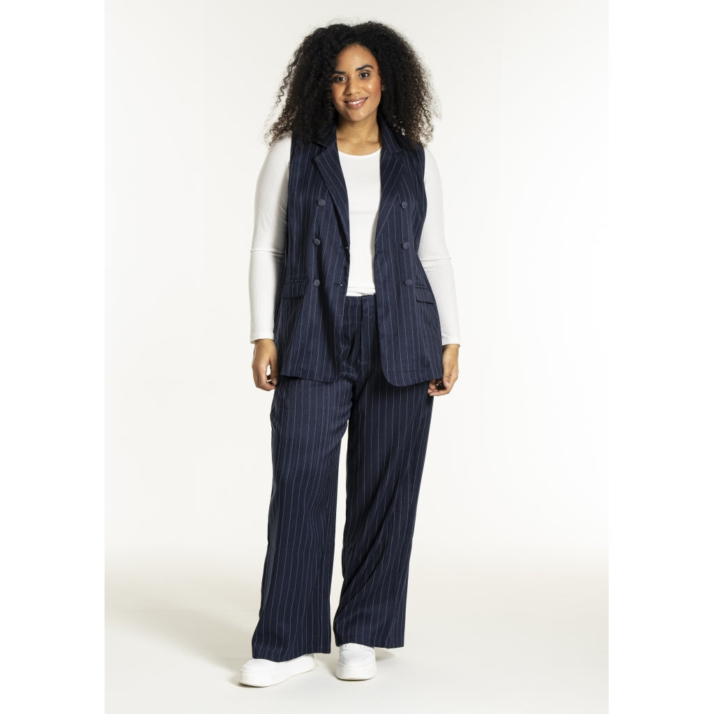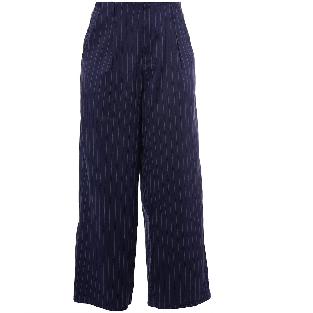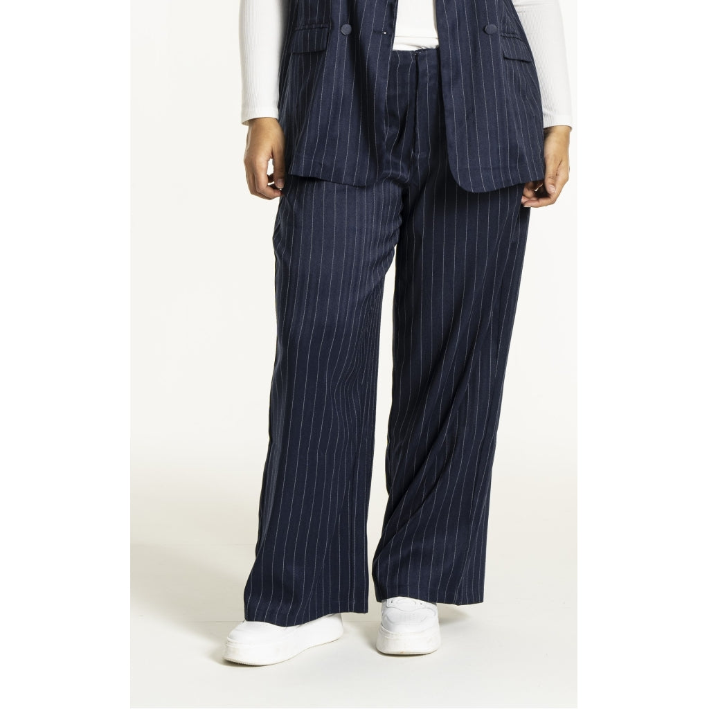 Fine bukser i elastisk polyester-viskose-mix med klassiske, smalle striber i hvid, som skaber et tidløst og elegant udtryk. Pasformen er løs med brede, lige ben og høj talje. Fint design med pressefolder foran, bæltestropper, skrålommer i siderne samt lynlås- og hægte-lukning.
