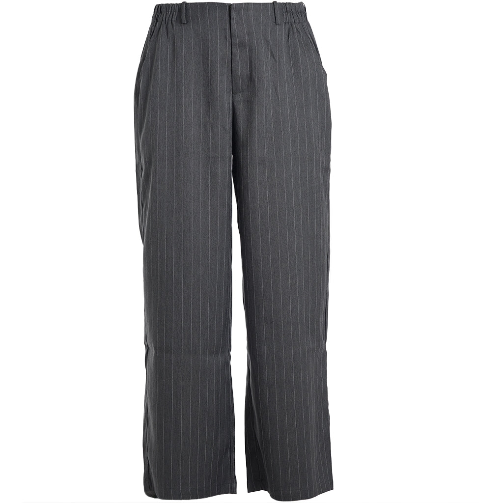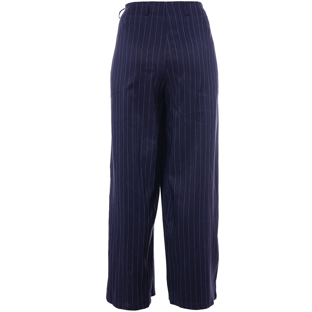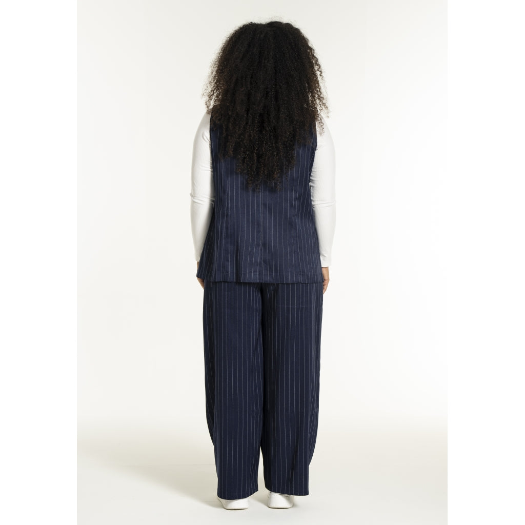 Fine bukser i elastisk polyester-viskose-mix med klassiske, smalle striber i hvid, som skaber et tidløst og elegant udtryk. Pasformen er løs med brede, lige ben og høj talje. Fint design med pressefolder foran, bæltestropper, skrålommer i siderne samt lynlås- og hægte-lukning.